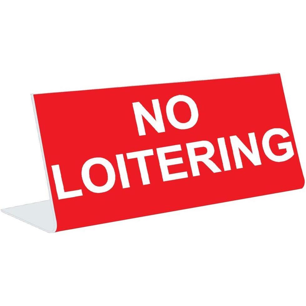 Be the first to review “3″ x 8″ Engraved Tabletop Pedestal Desk Sign – NO Loitering – RED/White”