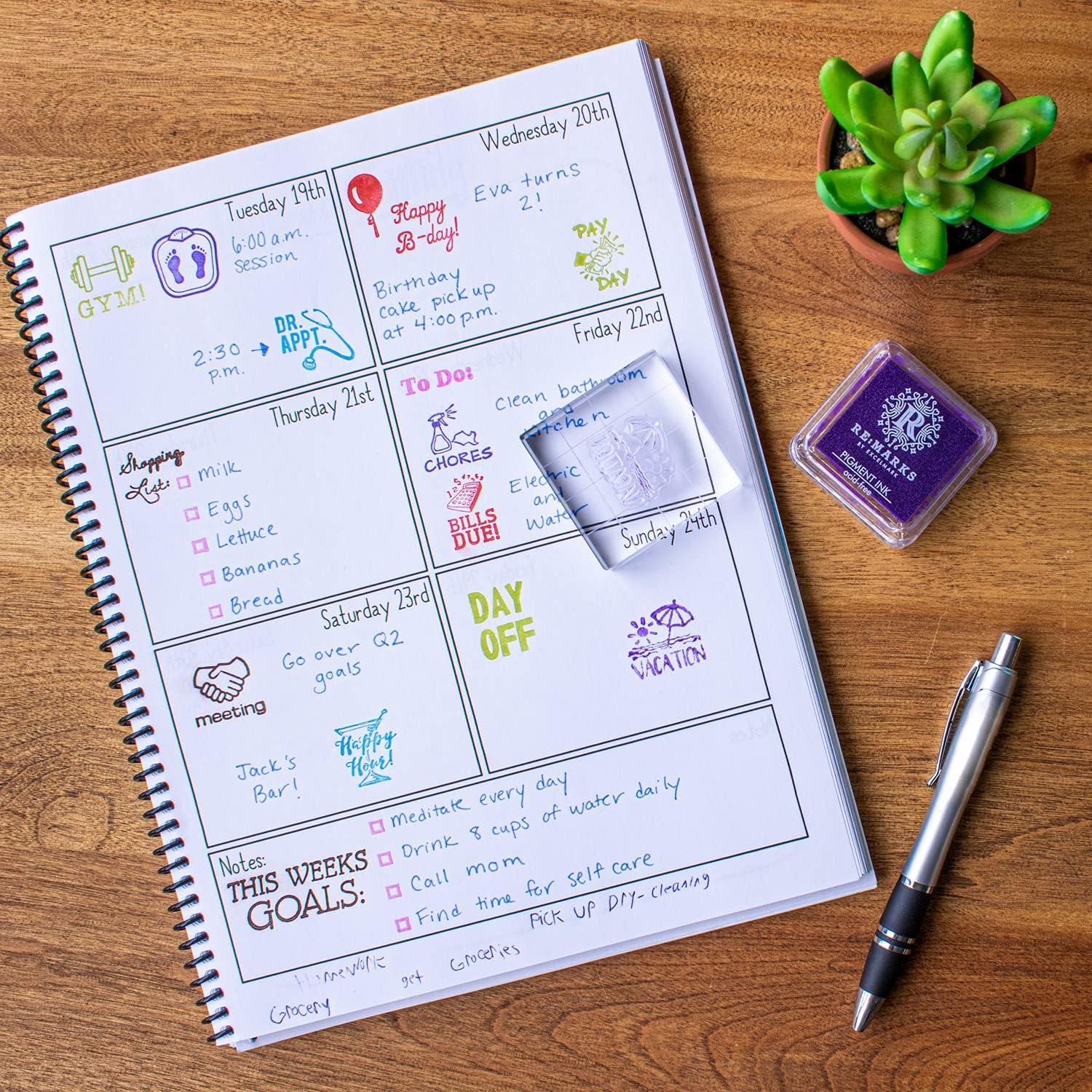 Cling Stamp Set with 4″x 4″Clear Acrylic Stamp Block (Planner)