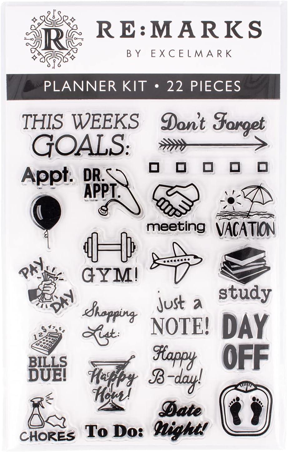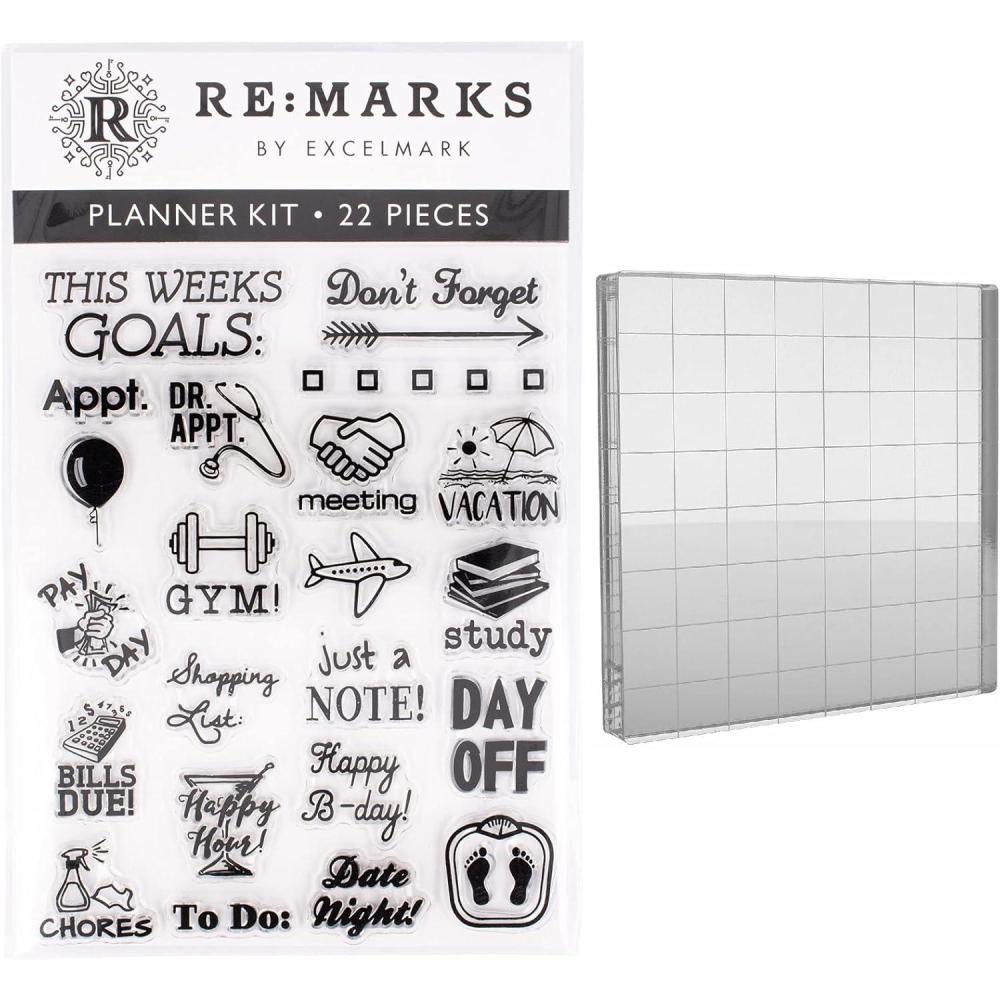 Cling Stamp Set with 4"x 4"Clear Acrylic Stamp Block (Planner)