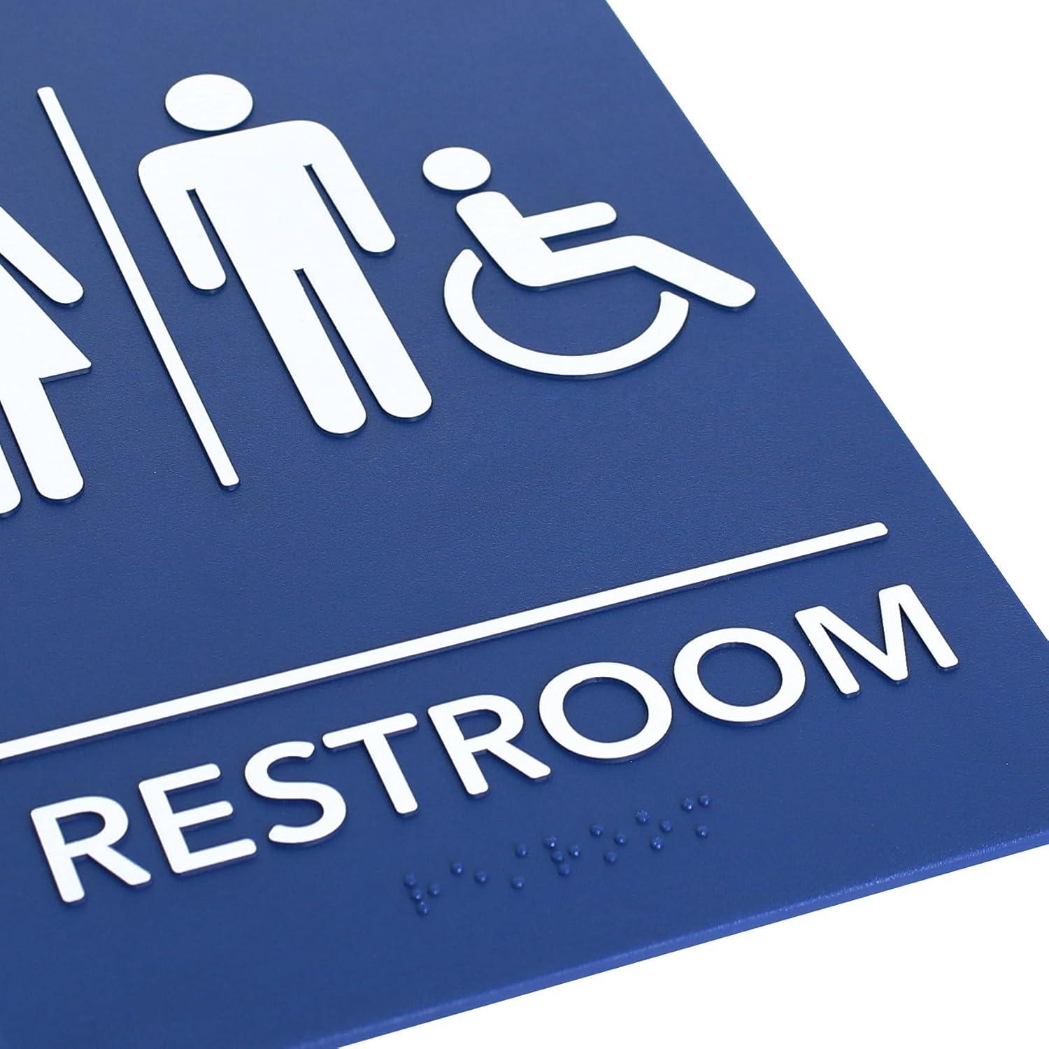 ExcelMark 6"x 9"Blue ADA Bathroom Sign with Double Sided Tape (Unisex Handicap)(Unisex Handicap)