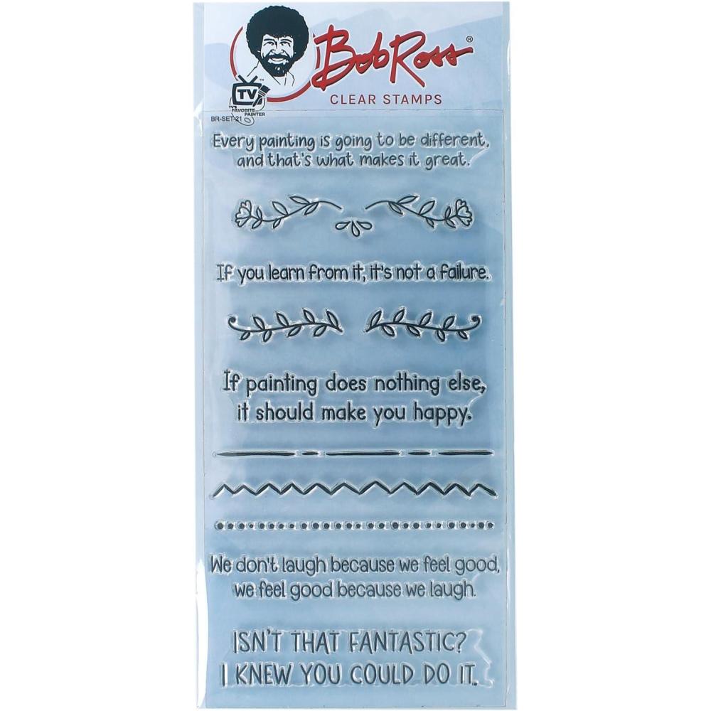 Bob Ross is one of the most iconic and memorable personalities on public television. With his gentle approach and homespun humor, he has taught inspiring artists at any level to create realistic landscape paintings. Now, you too can be inspired by Bob Ross with clear stamp sets!