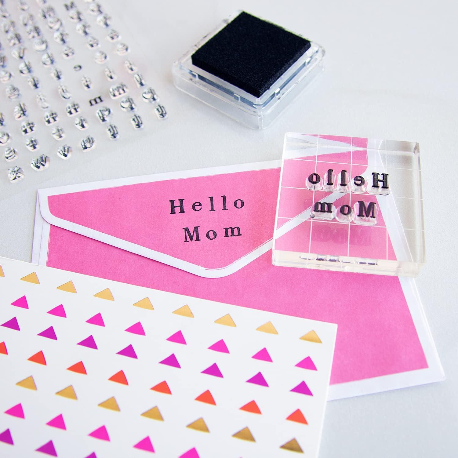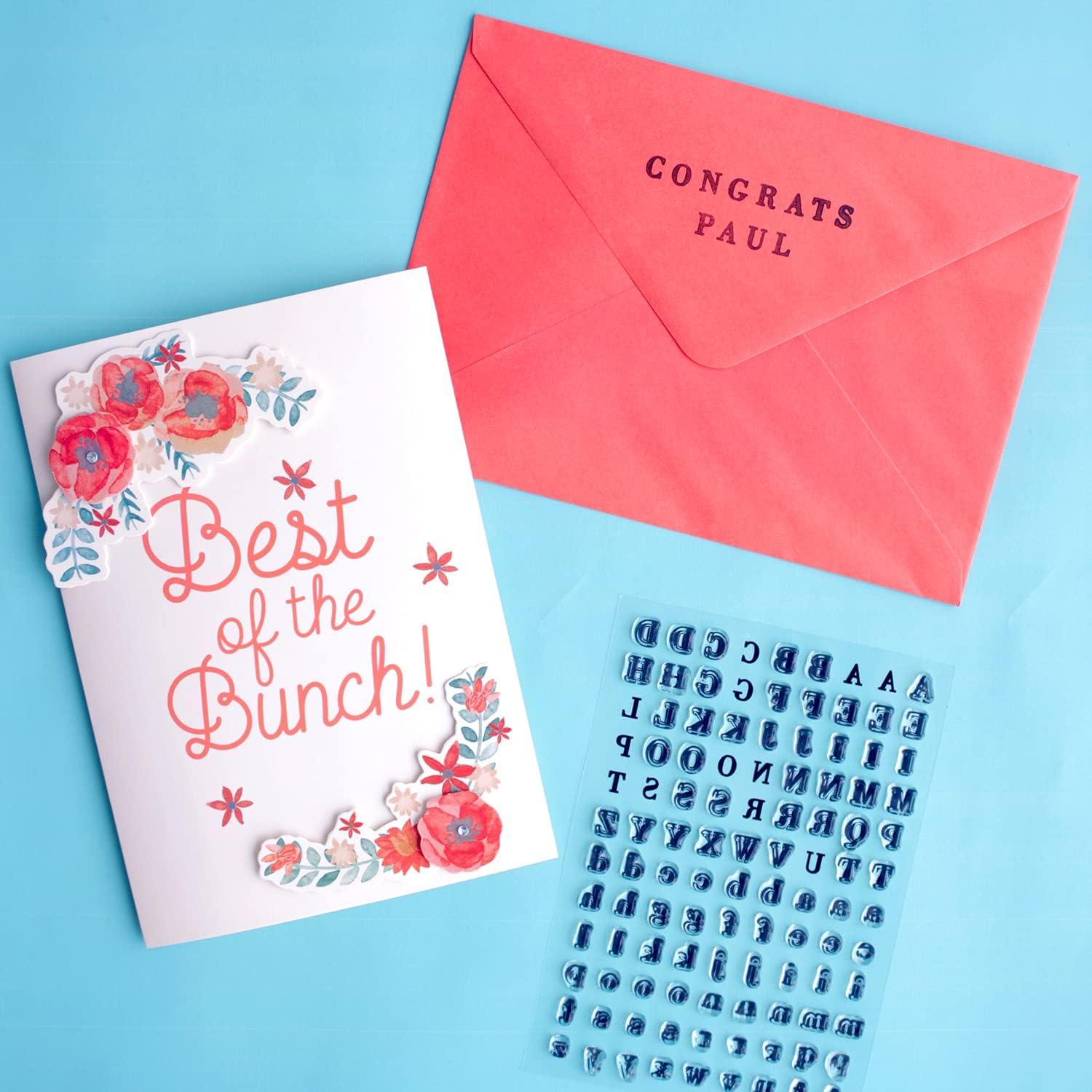ExcelMark Cling Stamp Set with 4″x 4″Clear Acrylic Stamp Block (Alphabet)