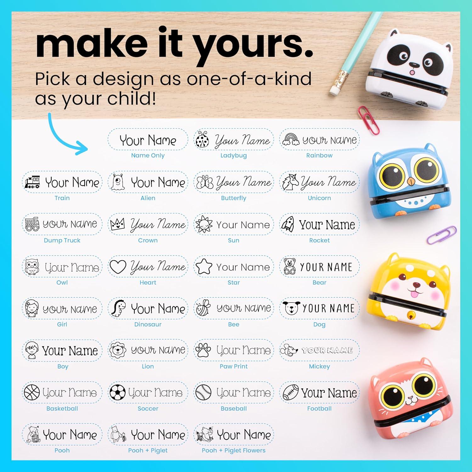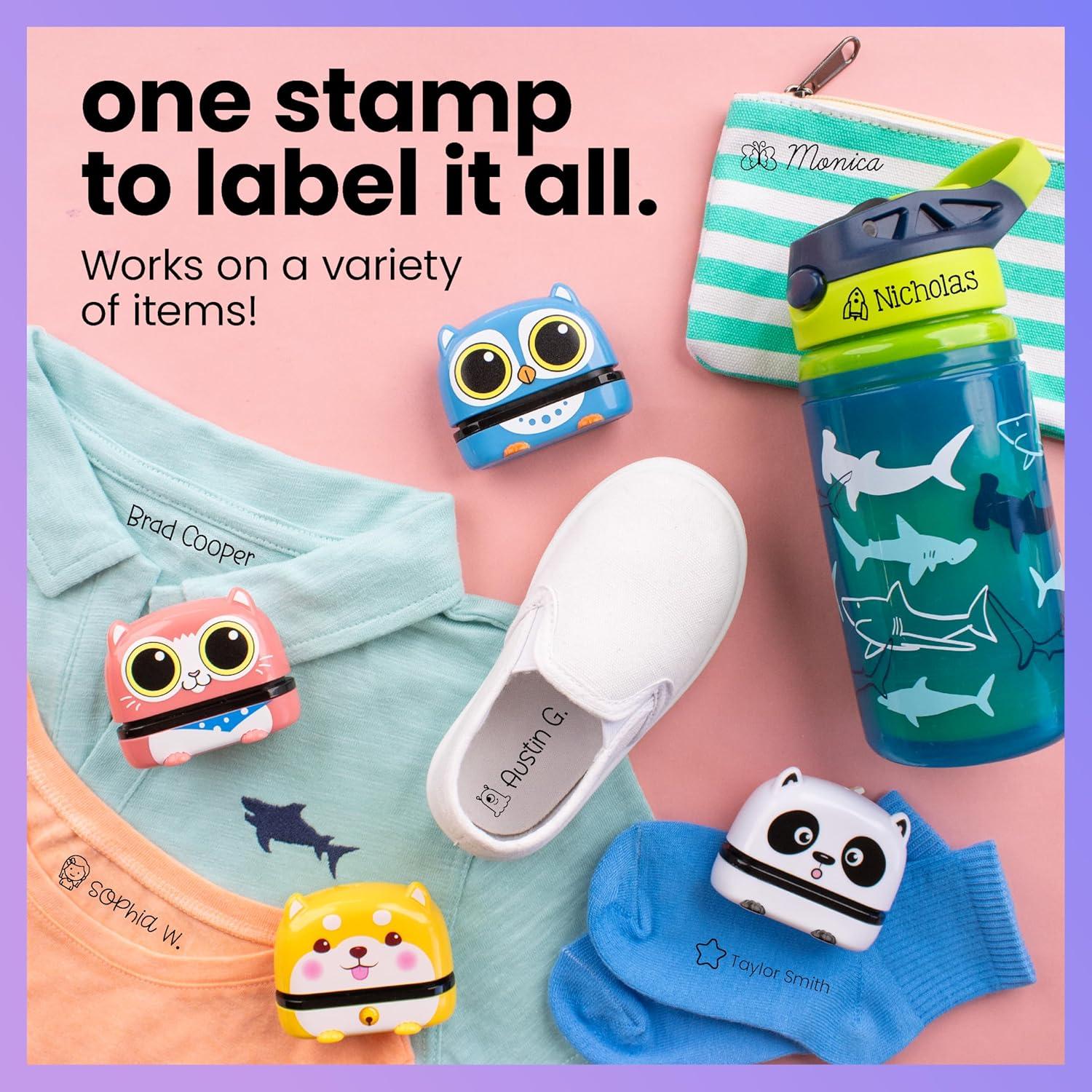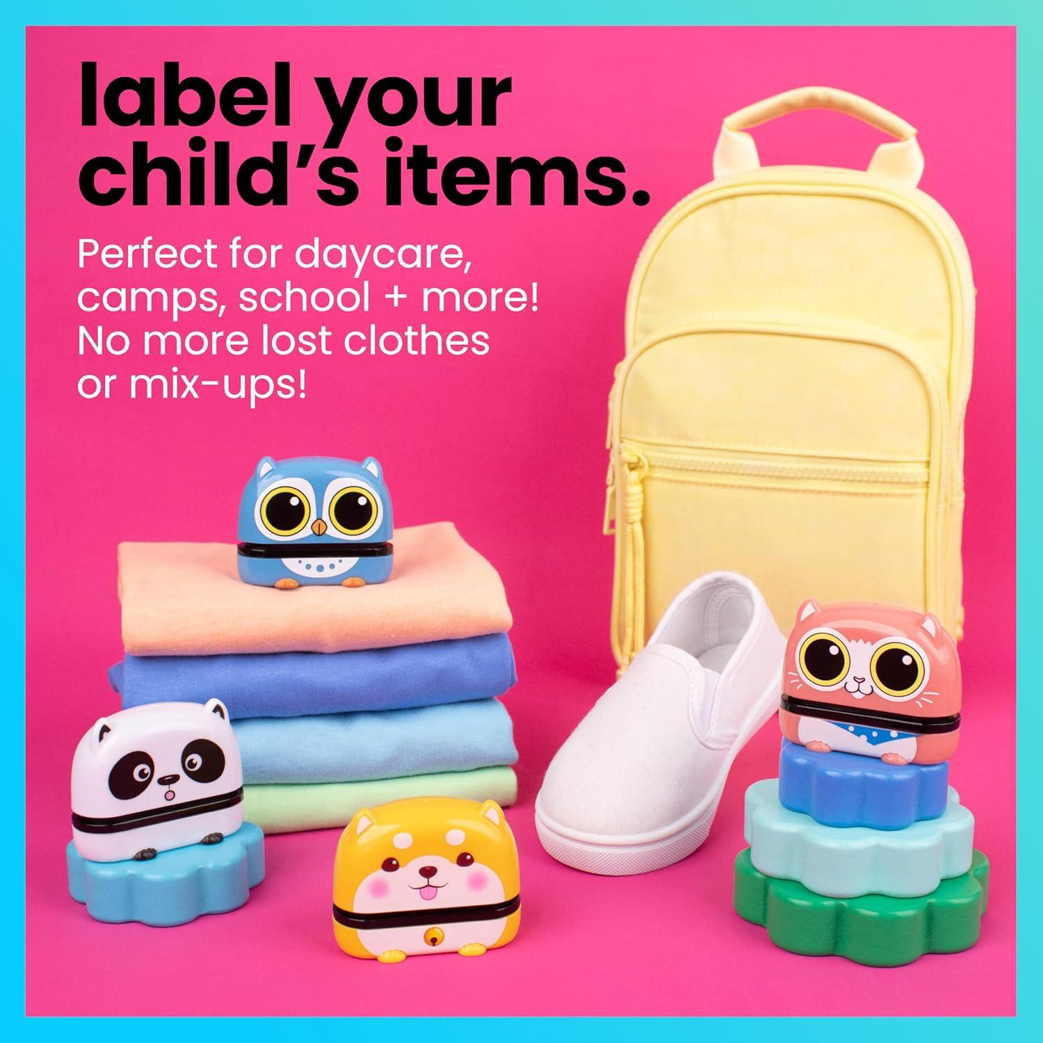 ExcelMark Clothing Name Stamp for Kids. Waterproof Ink. Perfect for Daycare, Camp, and School! (Panda)(Puppy)