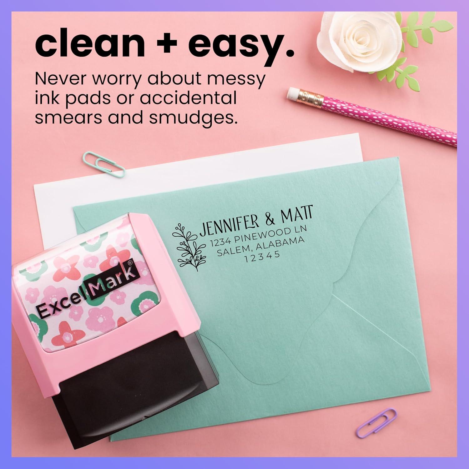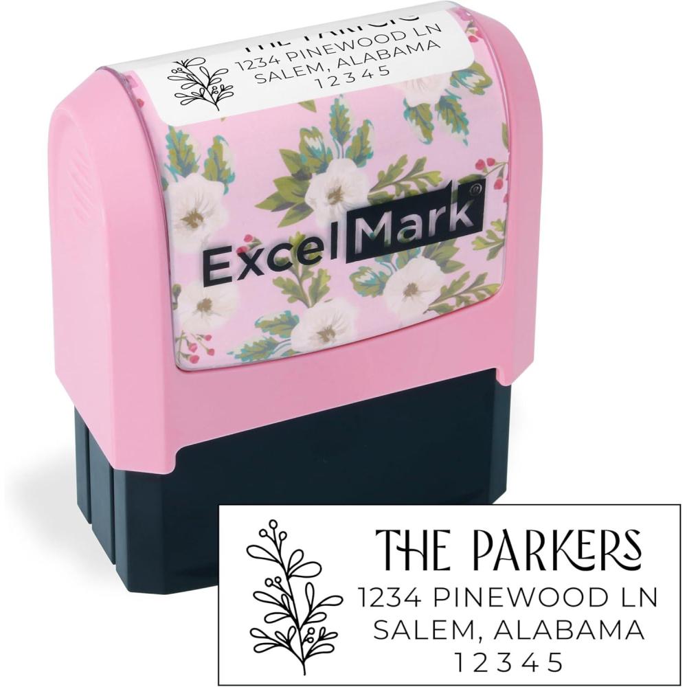 ExcelMark Custom Return Address Stamp – Personalize with Your Address and Pick from 10 Stylish Mount Patterns (Foliage Edge)(Everyday Elegance)