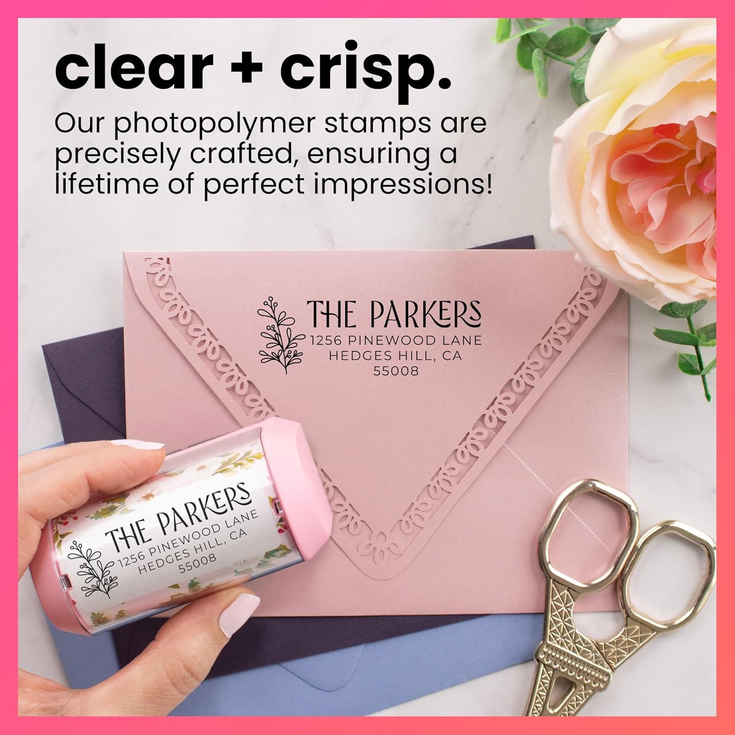 COMPLETE CUSTOMIZATION – Select your favorite impression style to give your return address a more personal flair. We also offer 10 different designs for the stamp mount itself!
