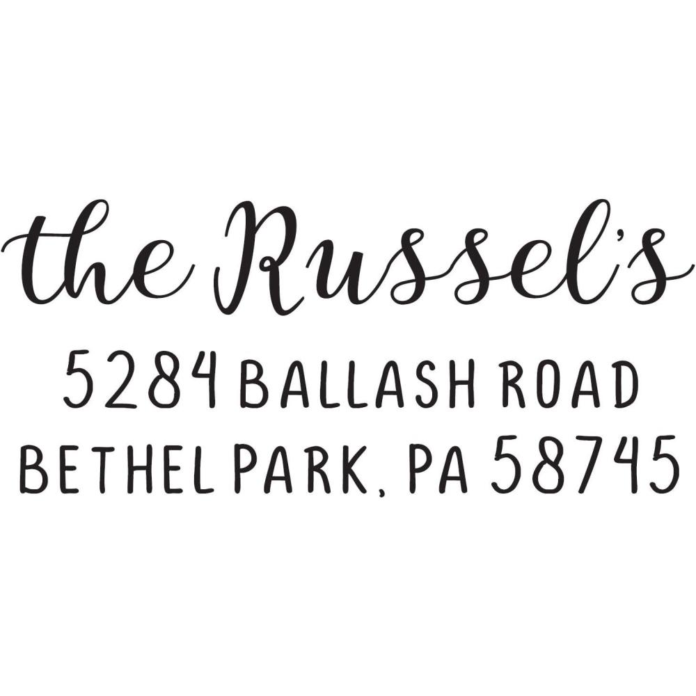 Self-inking return address stamp customized with your name and address in the font and style shown