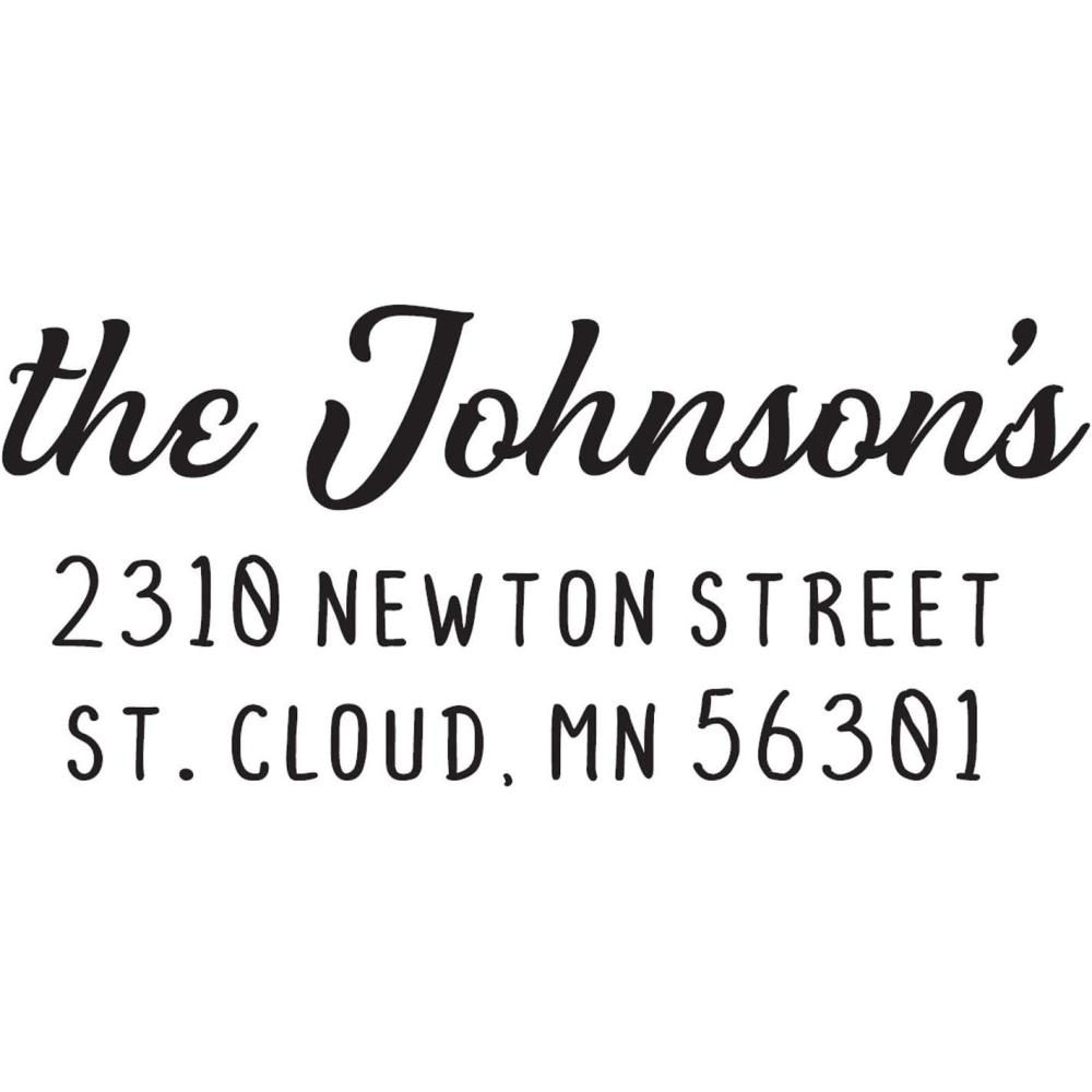 Self-inking return address stamp customized with your name and address in the font and style shown