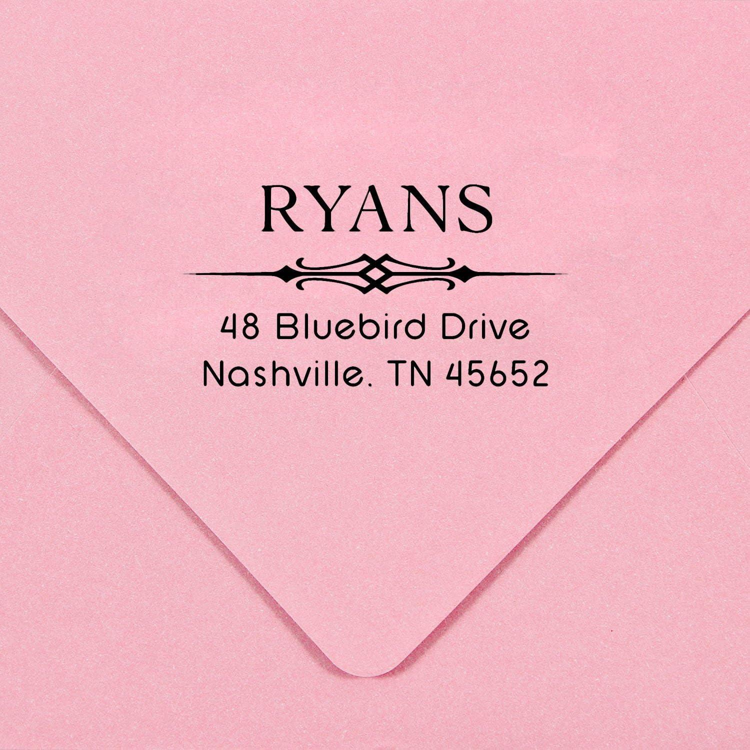 Self-inking return address stamp customized with your name and address in the font and style shown