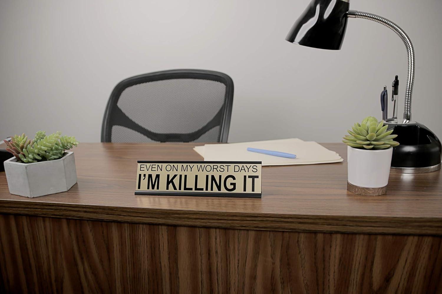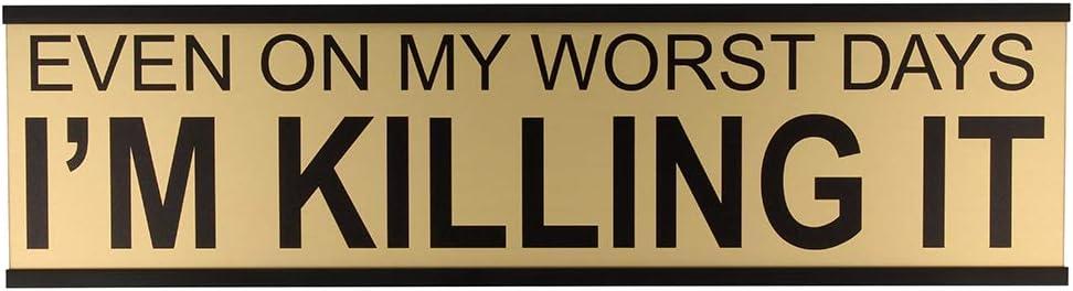 ExcelMark Even On My Worst Days I’m Killing It Desk Plate – 2″x 8″Novelty Name Plate – Gold Name Plate with Black Desk Holder