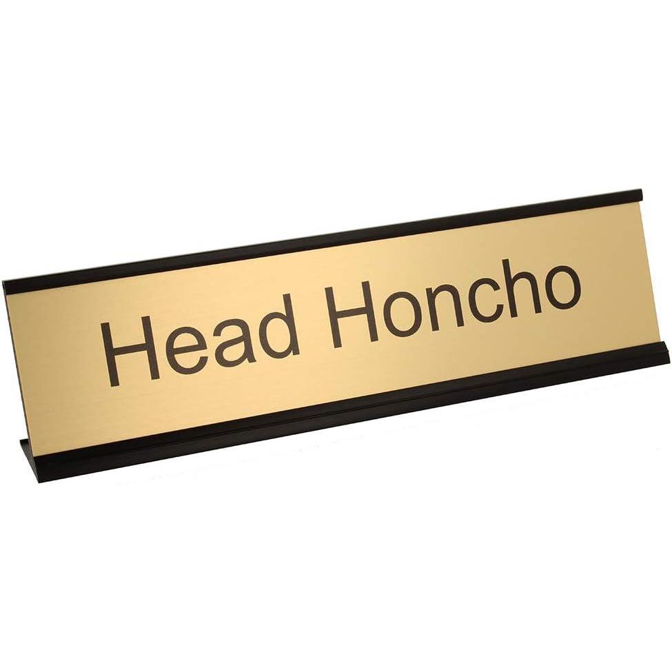 imageExcelMark Head Honcho Desk Plate  2quotx 8quotNovelty Name Plate  Gold Name Plate with Black Desk Holder