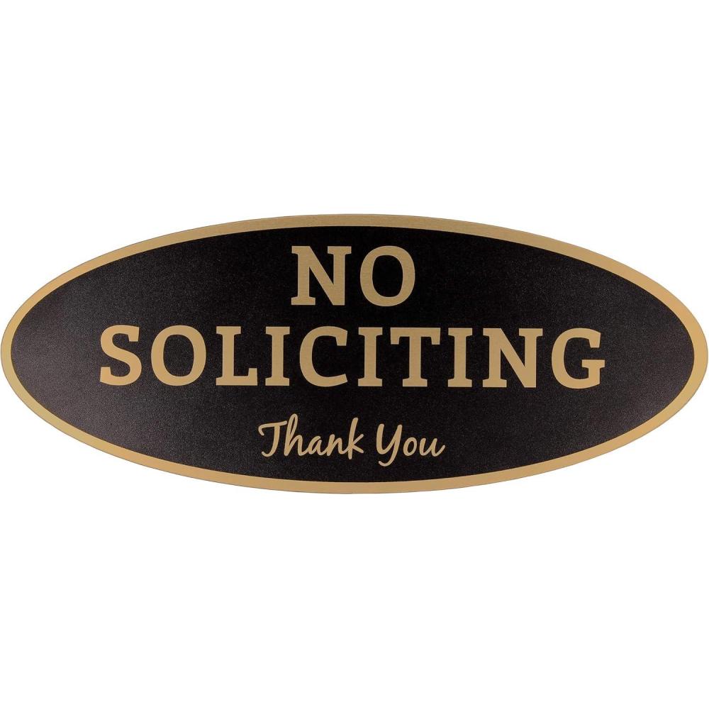 ExcelMark No Soliciting Sign for House or Business – Durable Indoor/Outdoor Sign – Easily Attach to Front Door – UV and Weather Resistant (Extra Large – 4.5″x 11″, Black with Gold Letters)