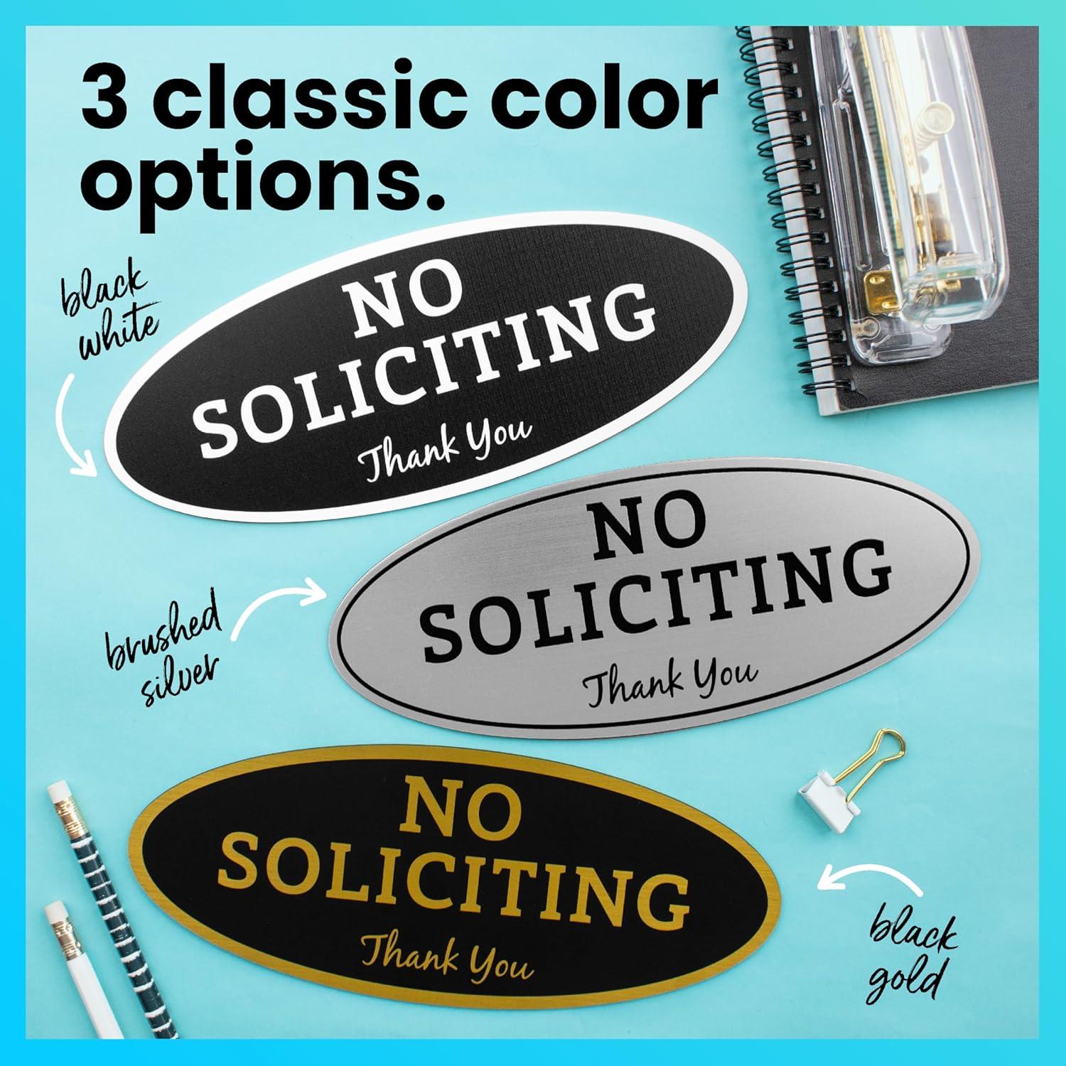 VERSATILE: Our premium no soliciting signs come in 2 styles, 3 colors, and 3 size options, making them the perfect no soliciting sign for your house and office buildings. Every option is easily readable at most distances.