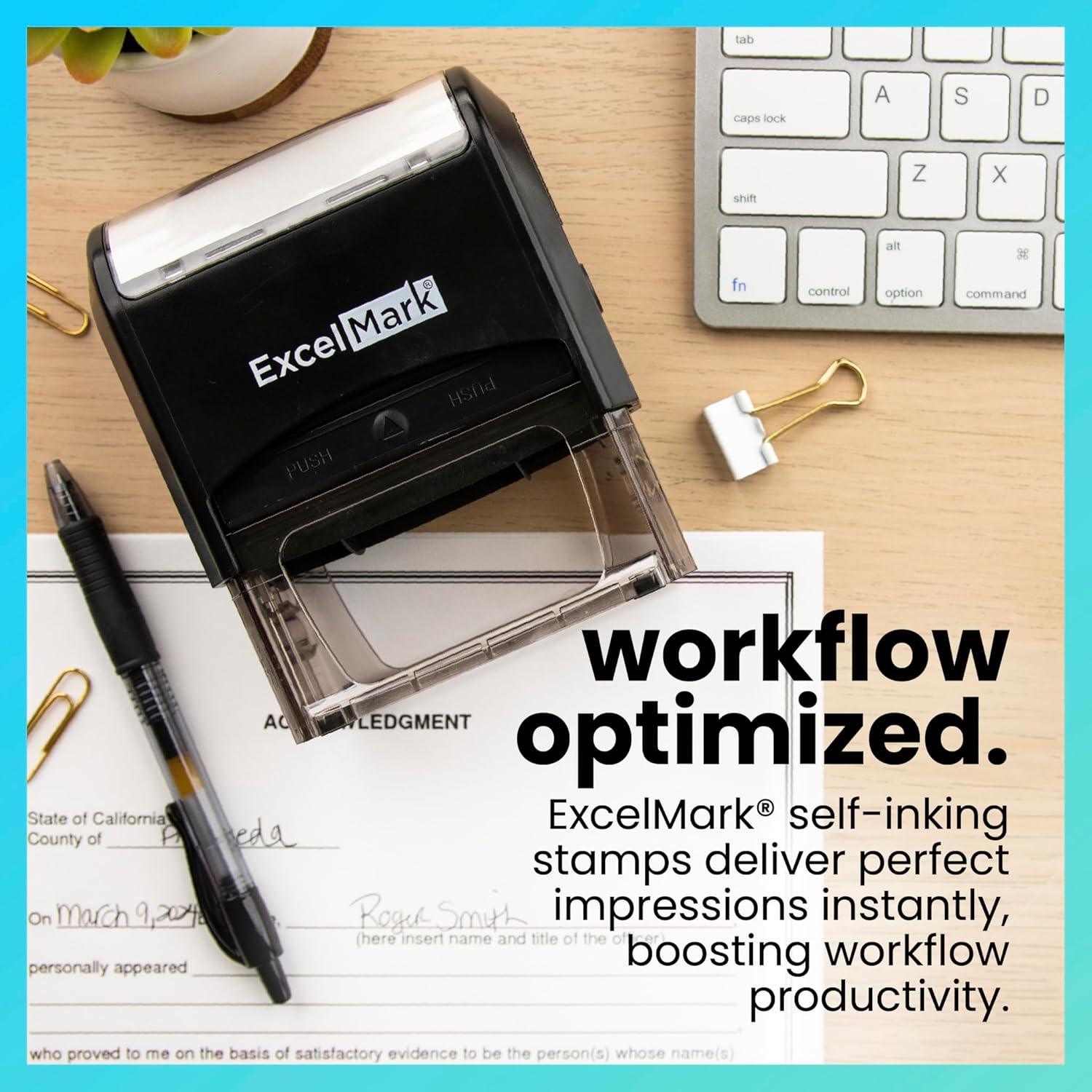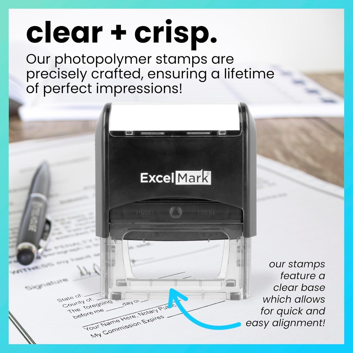 This is a stock stamp, we will not customize it with your name or information. If you are looking for a custom notary stamp, check out our selection of ExcelMark custom notary stamps.