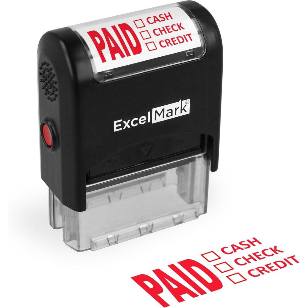 ExcelMark Paid Cash Check Credit – Self-Inking Rubber Stamp – A1539 Red Ink