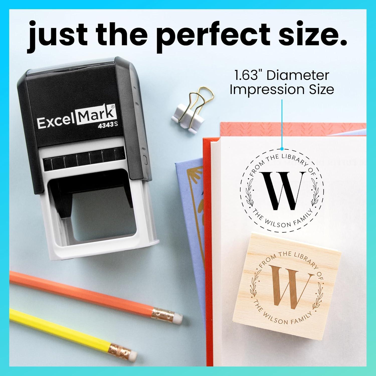 ExcelMark Personalized Book Embossers & Stamps – Personalize a Book Embosser, Wood Stamp, or Self-Inking Mount (Wildflower, Round)(Foliage)