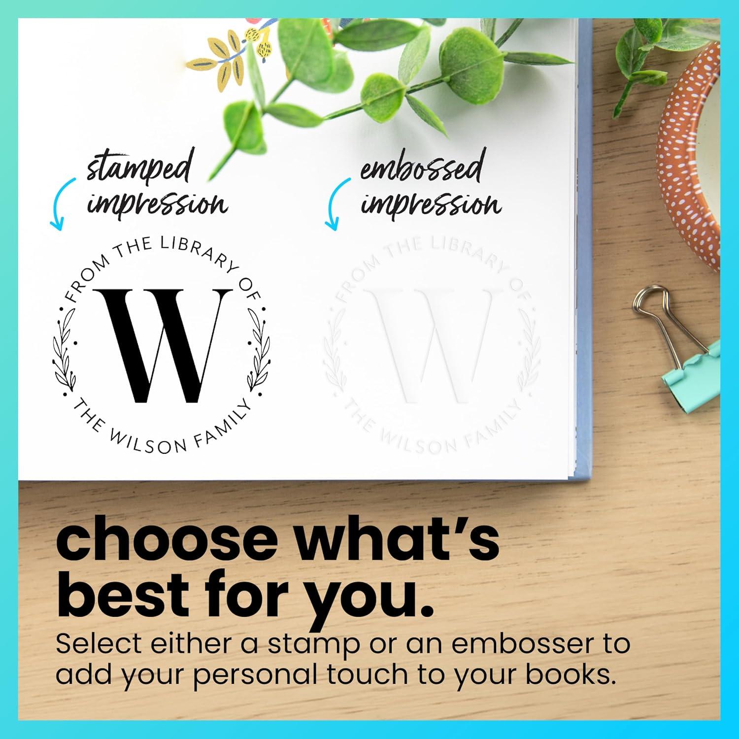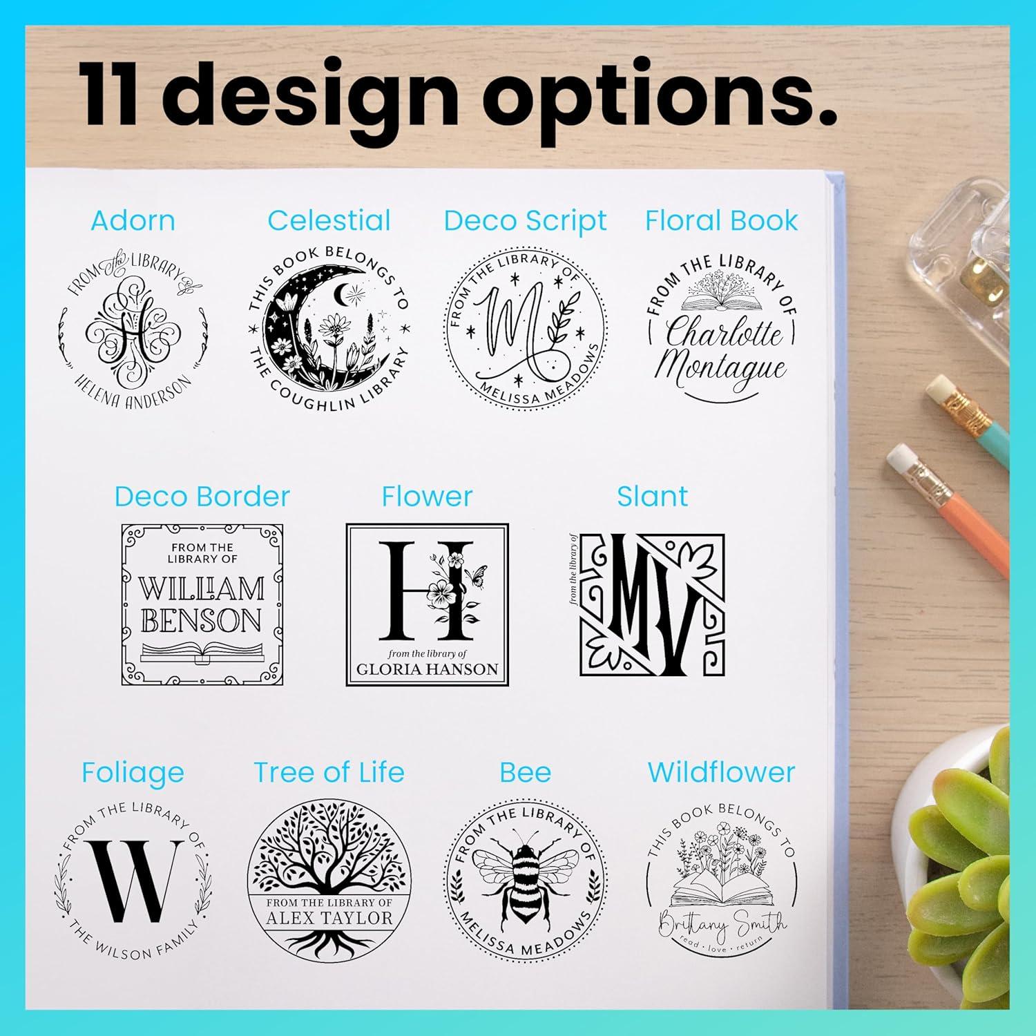 3 STYLES OF MOUNTS—Choose between a wooden stamp, self-inking stamp, or embosser to provide the perfect impression for your books. For the wood stamp and self-inking options, you can choose from 6 ink color options!