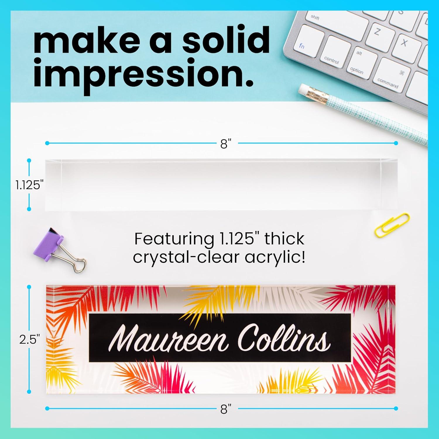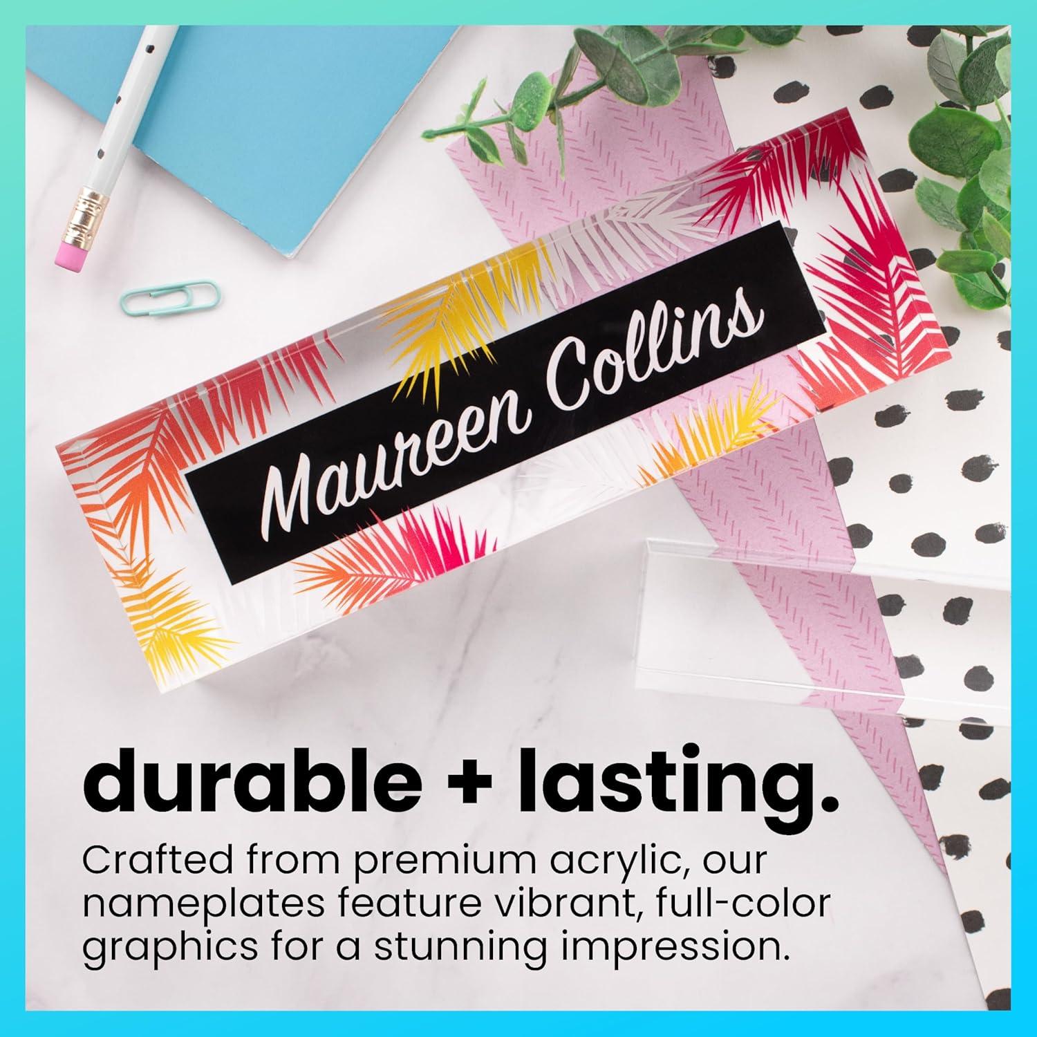 ExcelMark Personalized Name Plate – Premium Acrylic – 8" x 2.5" – Tropical (Style 5)(Style 1)