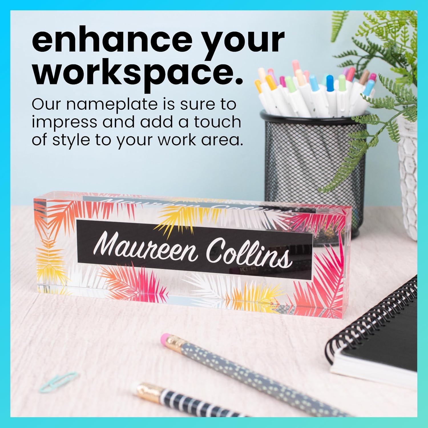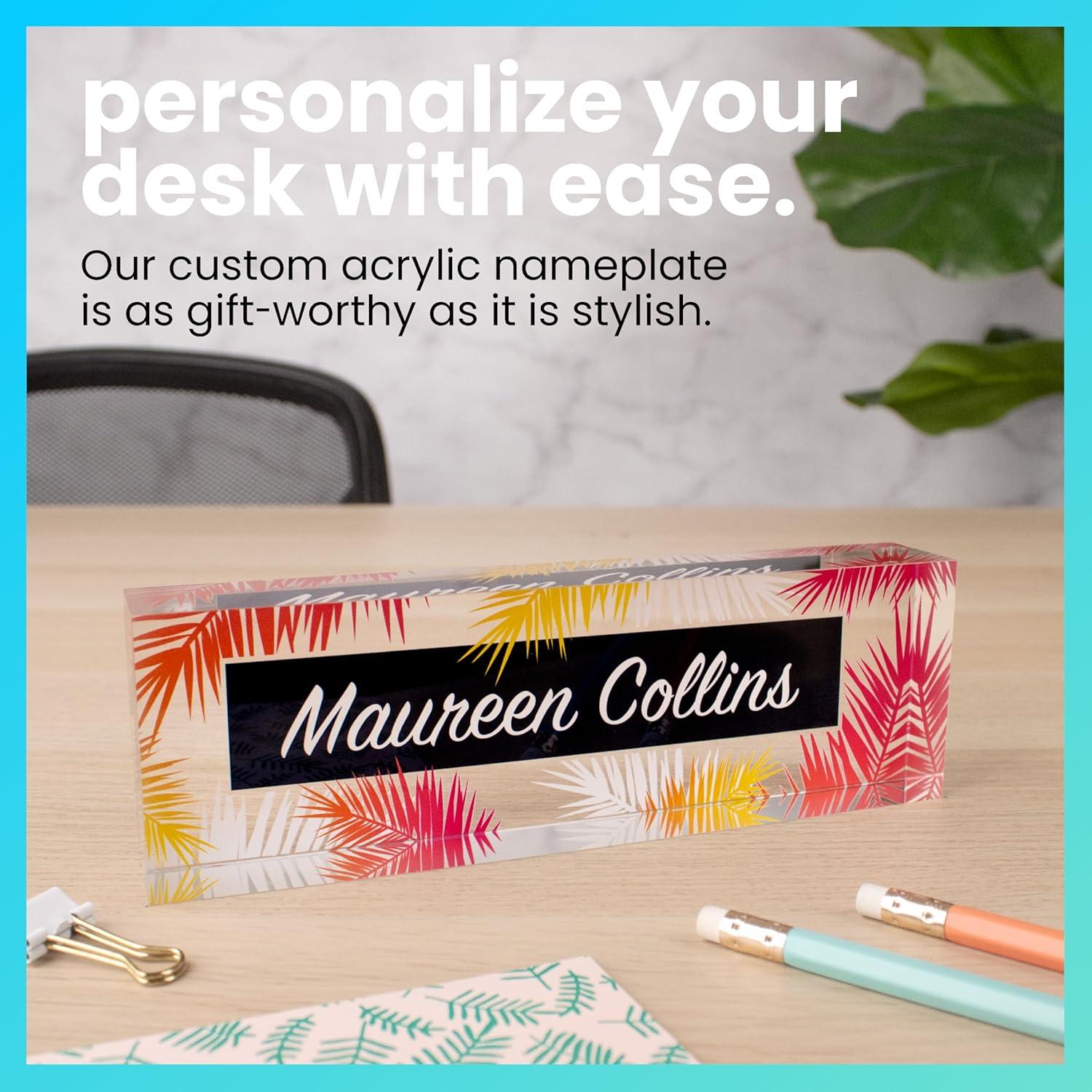 ExcelMark Personalized Name Plate – Premium Acrylic – 8″ x 2.5″ – Tropical (Style 5)(Style 2)
