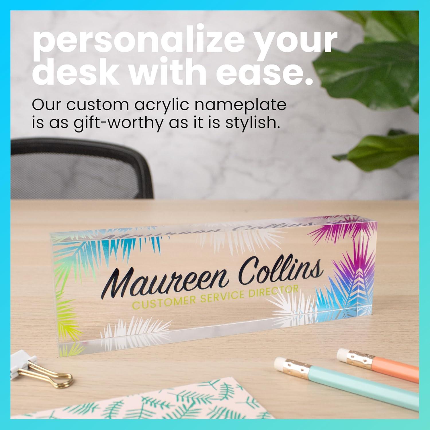 ExcelMark Personalized Name Plate – Premium Acrylic – 8″ x 2.5″ – Tropical (Style 5)(Style 5)