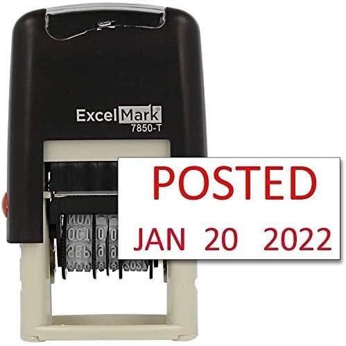 ExcelMark Posted - Self-Inking Rubber Date Stamp - Compact Size - Red Ink(Red Ink)