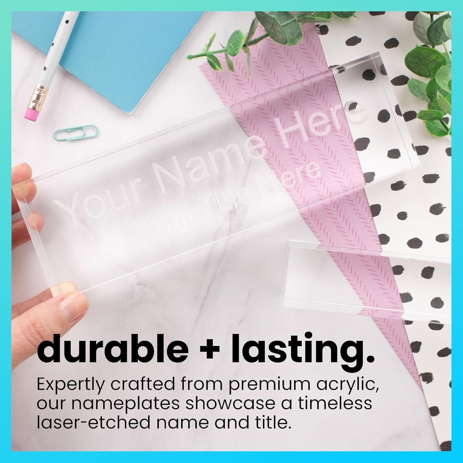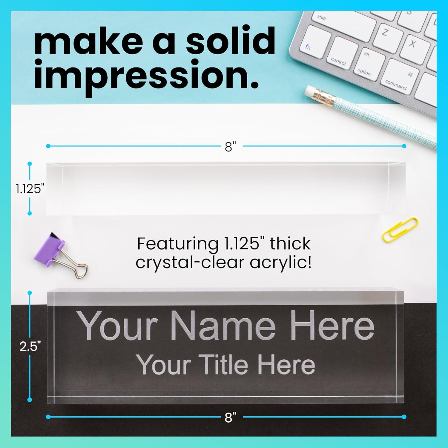ExcelMark Premium Custom Laser Etched Nameplate - 2.5" x 8" Clear Acrylic Block
