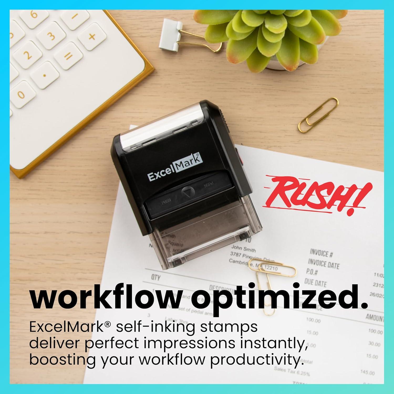 ExcelMark Rush Self Inking Rubber Stamp – Red Ink