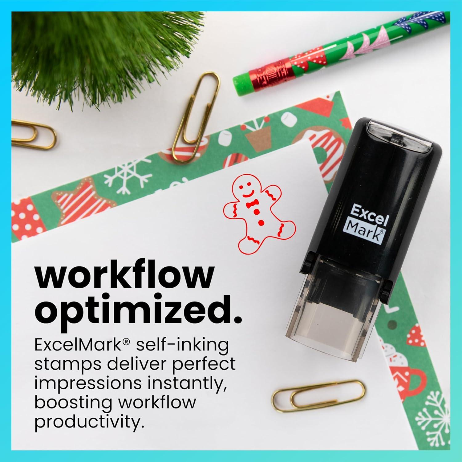 ExcelMark Self-Inking Christmas Rubber Stamp - Snowflake 1 - Red Ink(Gingerbread Man)