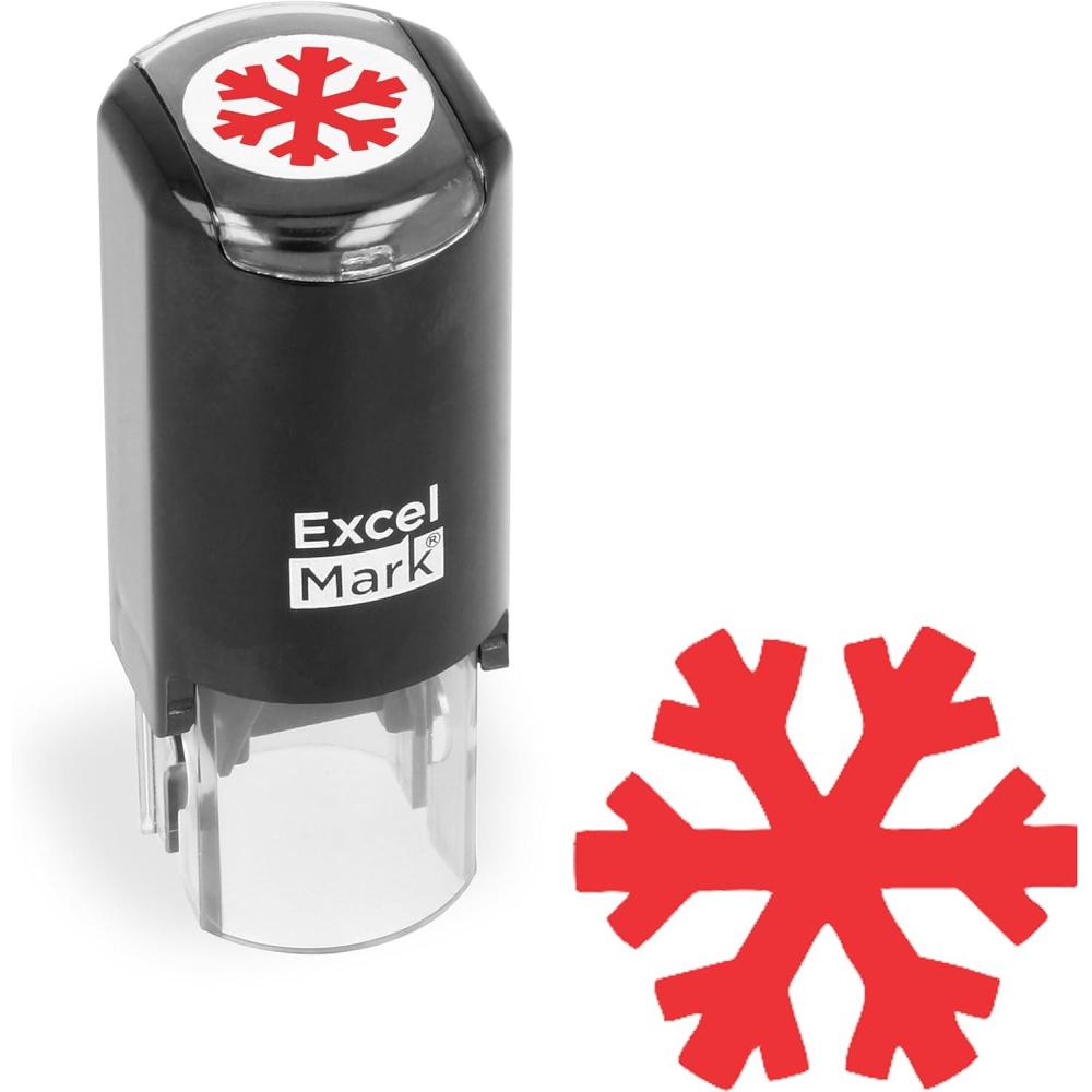ExcelMark Self-Inking Christmas Rubber Stamp – Snowflake 1 – Red Ink(Snowflake 1)