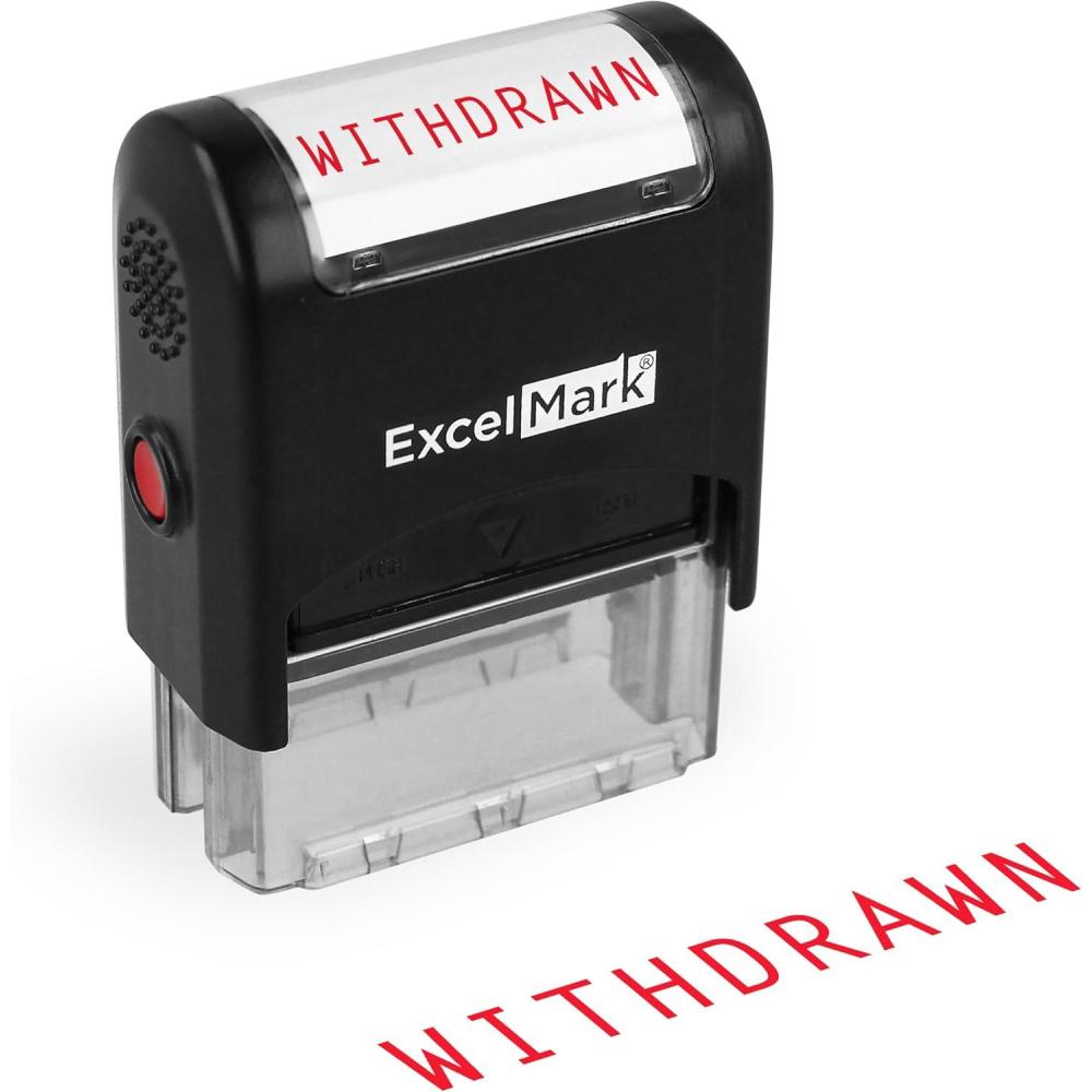 ExcelMark WITHDRAWN Self Inking Rubber Stamp – Red Ink (A1539)