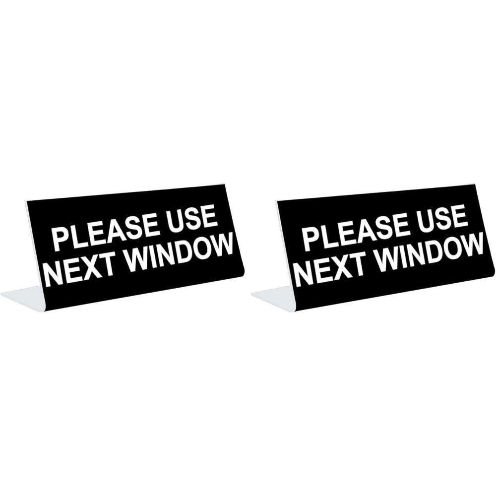 Please Use Next Window - 3" x 8" Engraved Desk Sign - Black/White(3x8 inches (Pack of 2))