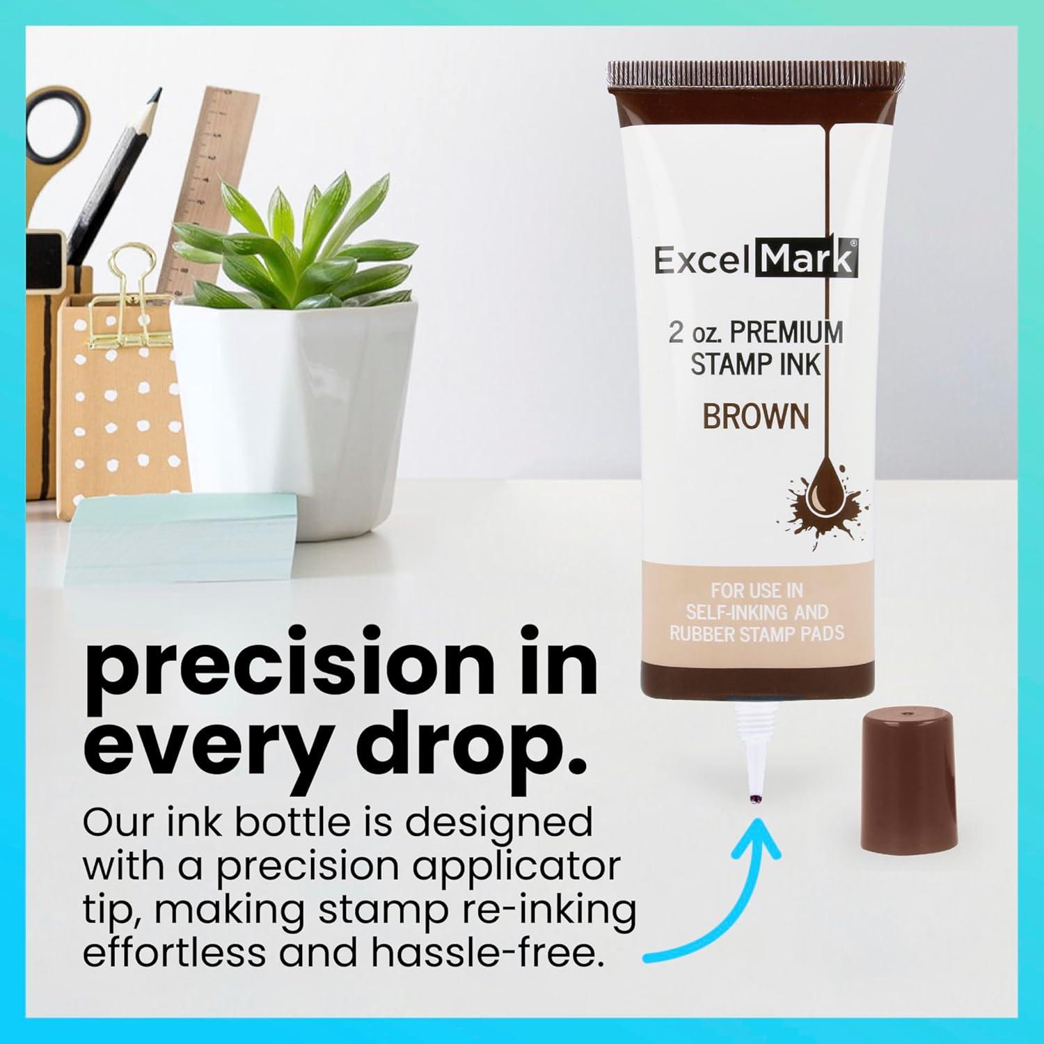 BROWN REFILL INK: this vibrant ink bottle is intended for ink pads and self-inking stamps from many manufacturers. Stamps from ExcelMark, Trodat, or 2000 Plus are ideal candidates for this refill ink.